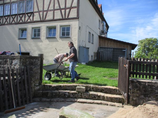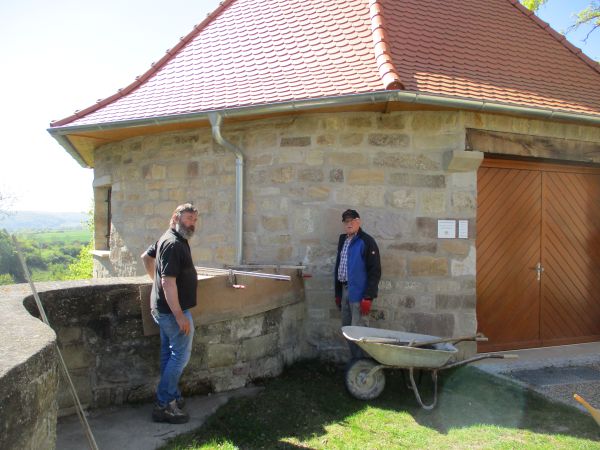 Die Brotzeit wurde heute im Burghof eingenommen und gegen Mittag wurde der Arbeitseinsatz der freiwilligen Helfer mit einem letzten Getränk beendet.