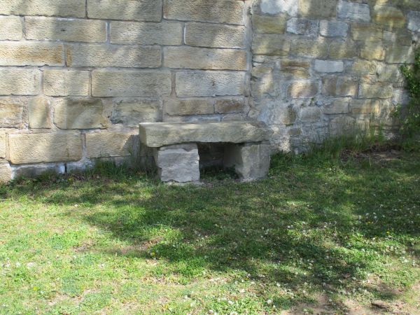 Weiter wurde Mörtel angemischt und die große Sandsteinplatte, welche hinter der Kemenatenmauer gelegen war, auf die schon vor einiger Zeit aufgestellten Sandsteine aufgesetzt, um daraus eine Sitzbank zu erstellen.